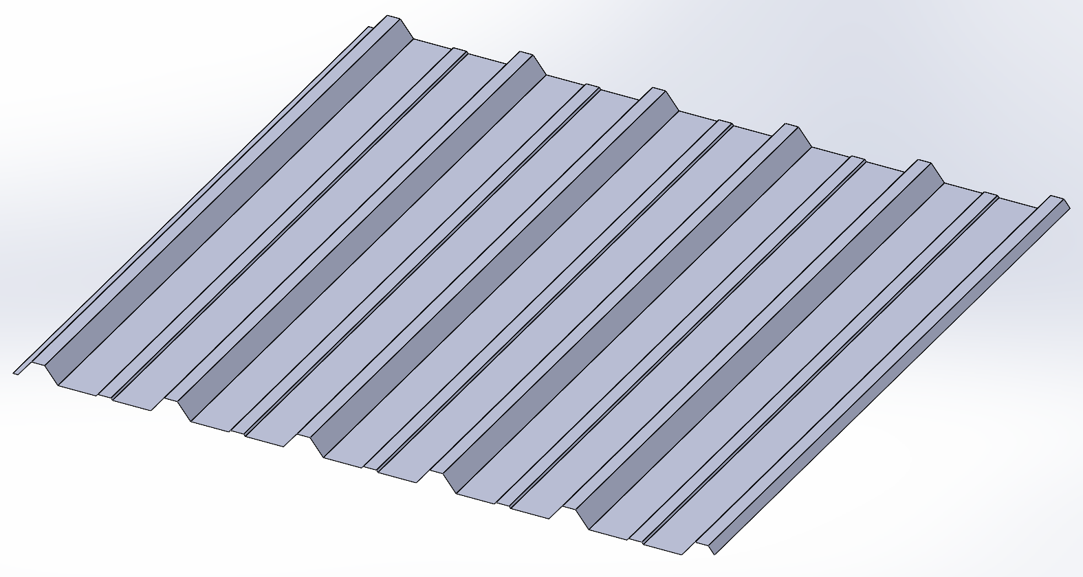 The normal thickness range of roof panel roll forming machine is 0.2mm-0.8mm, the standard or more used in international market is Gauge 26 (0.45-0.5mm), working raw material is Aluminum, PPGI, Galvanized steel, etc. We confirm machine’s configuration according to your drawing, specially the pitch and height of each wave.